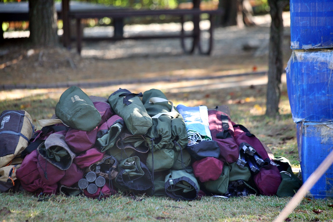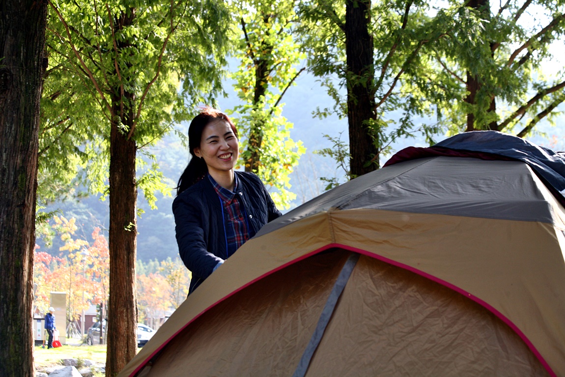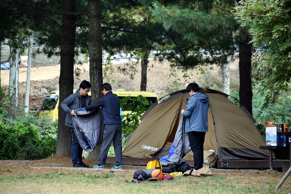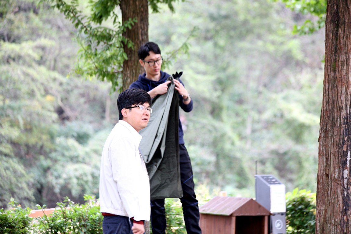 캠핑장비를 점검하고 신규자 공무원을 기다리는 스탭들...