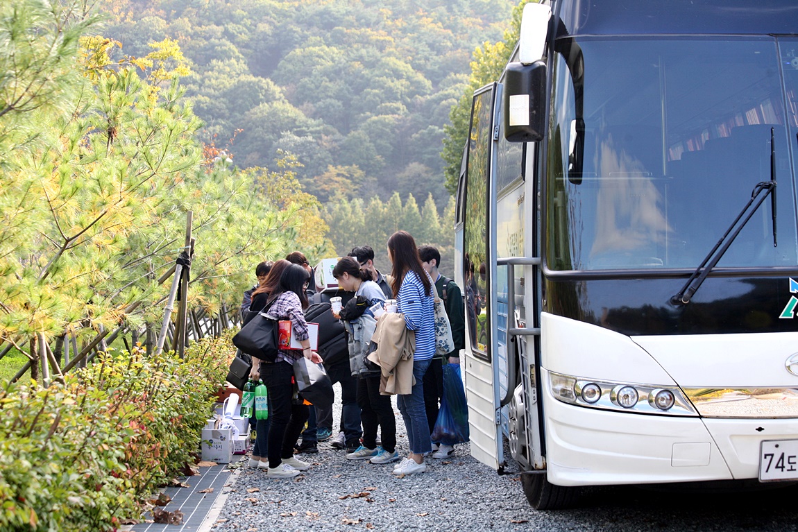 집결하여 버스로 현장에 도착한 신규자 공무원...