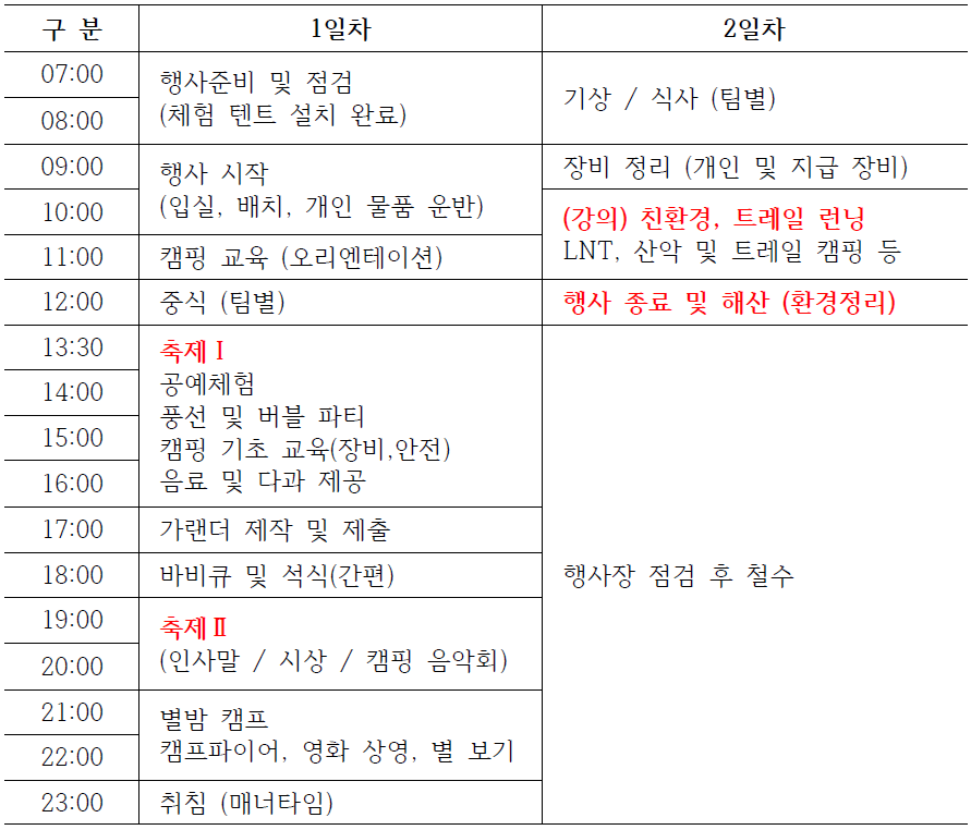 아래 참가 안내사항을 잘 읽어 보셔서, 가을 캠핑을 즐길 수 있는 소중한 시간이 되기를 바랍니다.